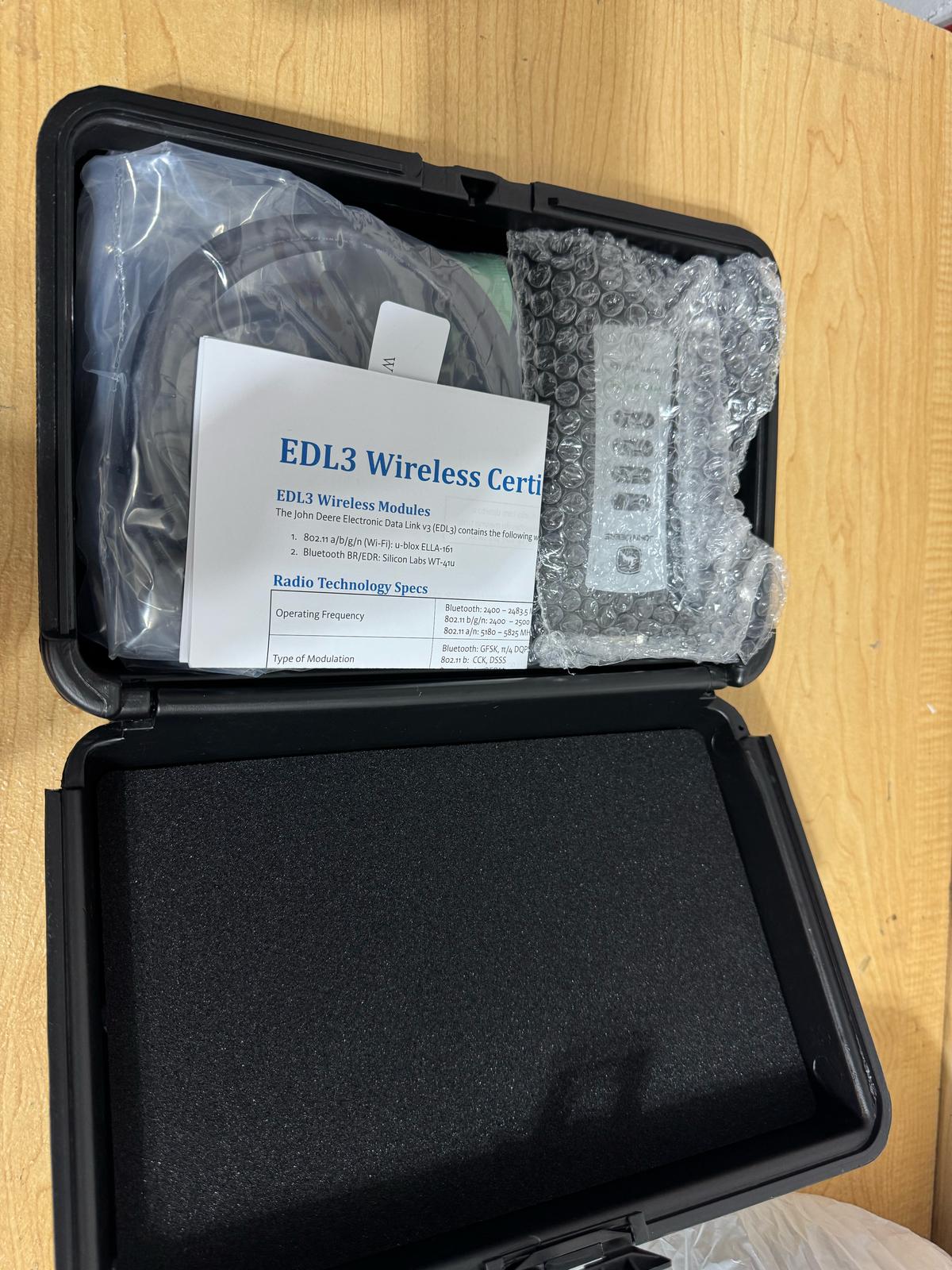 This is a genuine John Deere Service Advisor EDL v3 Kit (replaces EDL v2). The product comes in a plastic box. The edl kit also includes the V3 Wireless Adapter, W1 Connector Cable DS10150 and USB cable. This item does not include any defined software. Purchasing depending on the overall business situation. Links to suitable products are provided below.
